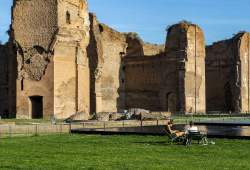 Progettare nelle Terme di Caracalla - E’ possibile progettare in maniera permanente dentro un monumento dotato di straordinaria potenza iconica, anche se (ma forse soprattutto se) assume l’immagine sublime di Rovina? E inoltre, siamo in grado di entrare in dialettica con la grande forza simbolica e spaziale del monumento, inserendovi positivamente la nostra cultura, il nostro vissuto e quindi anche una nuova lettura ed uso di questi grandi complessi storici?