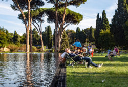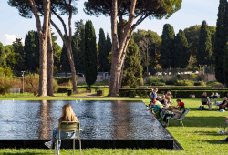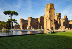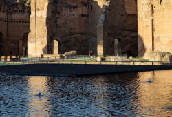 Ogni volta che si entra alle Terme di Caracalla, si tenta di immaginare dove fosse l’acqua che la animava nell’antichità. L’acqua per nuotare, per fare attività fisica, dove trascorrere una giornata all’insegna del benessere. Dov’era l’acqua? Come si muovevano i numerosi avventori delle Terme, tra piscine e fontane? Cosa facevano? Praticavano infatti l’Otium per avere cura di sé nel corpo e nella mente, nelle piscine e nei giardini, camminando sotto il Peristilio o sostando in una delle due Biblioteche.